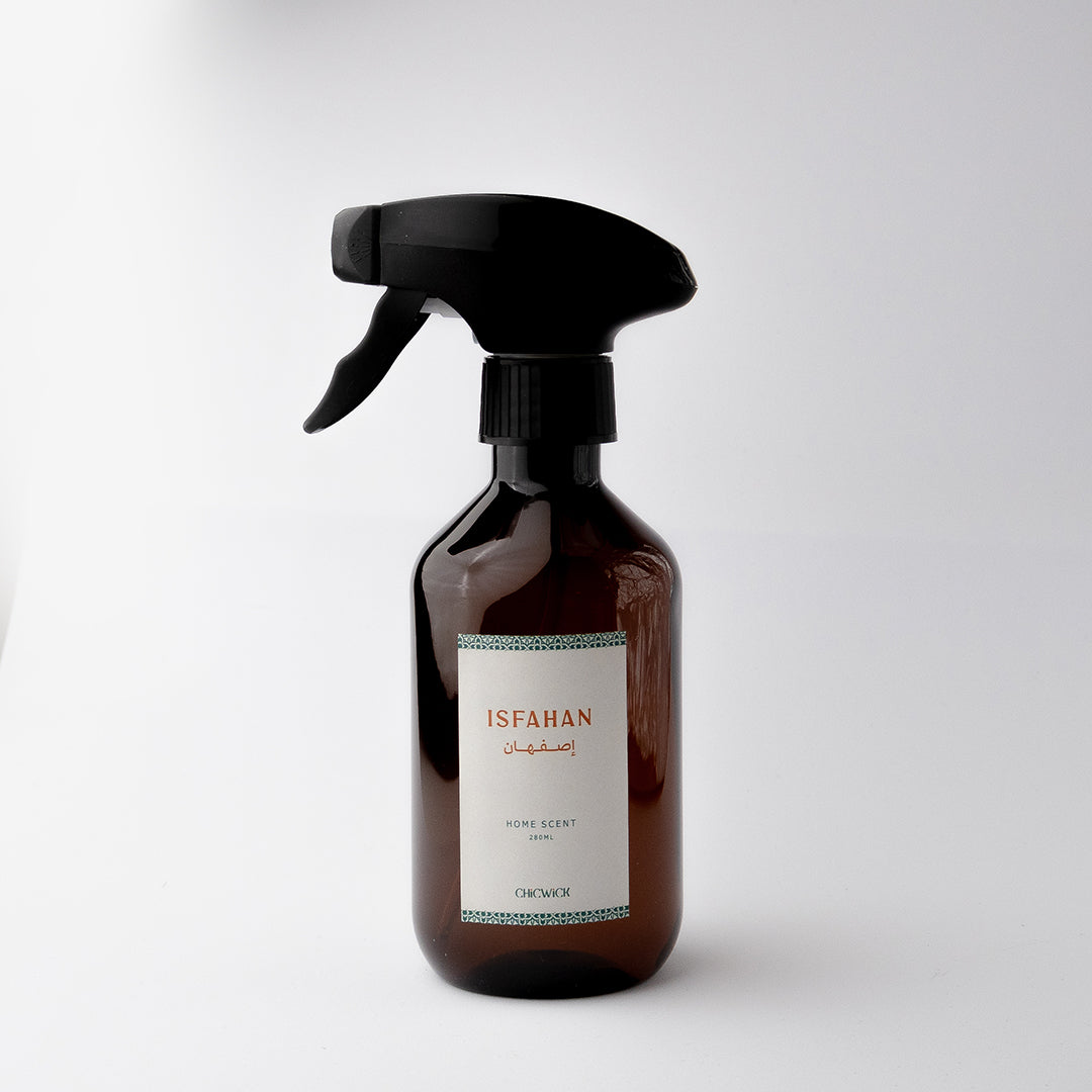 A luxurious spray with a special blend of saffron, oud, and rose water Elegant scent with long-lasting performance, perfect for fabrics and spaces